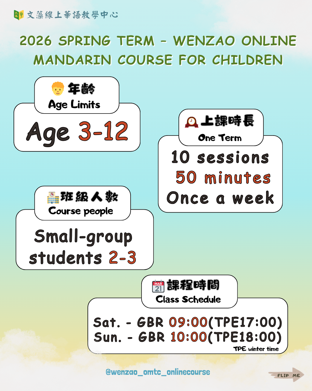 [ NEW! ]2026 Spring Term_ Wenzao Online Mandarin Course for Children
