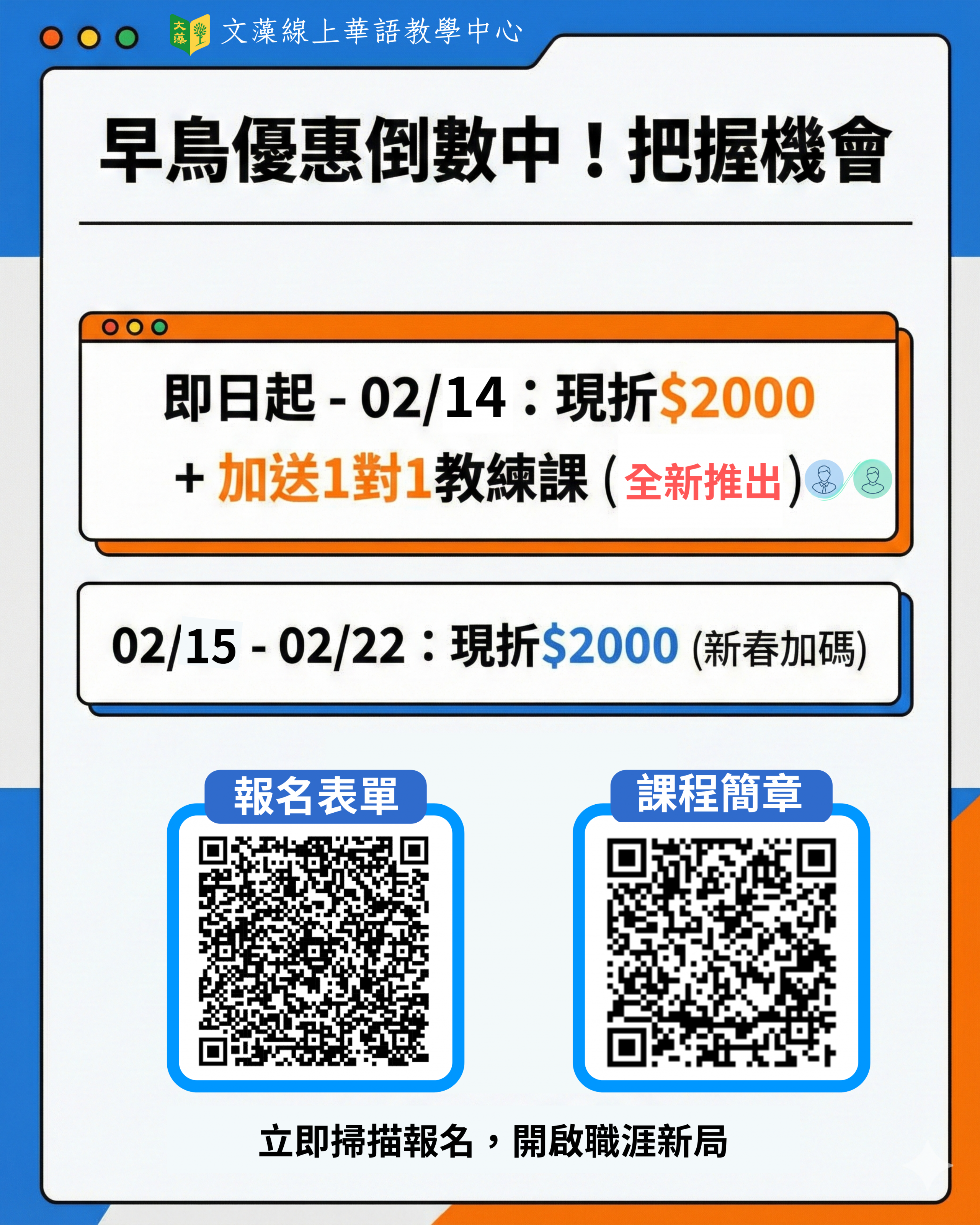 即日起–02/14 現折 $2,000+加送 一對一教練課(全新推出)