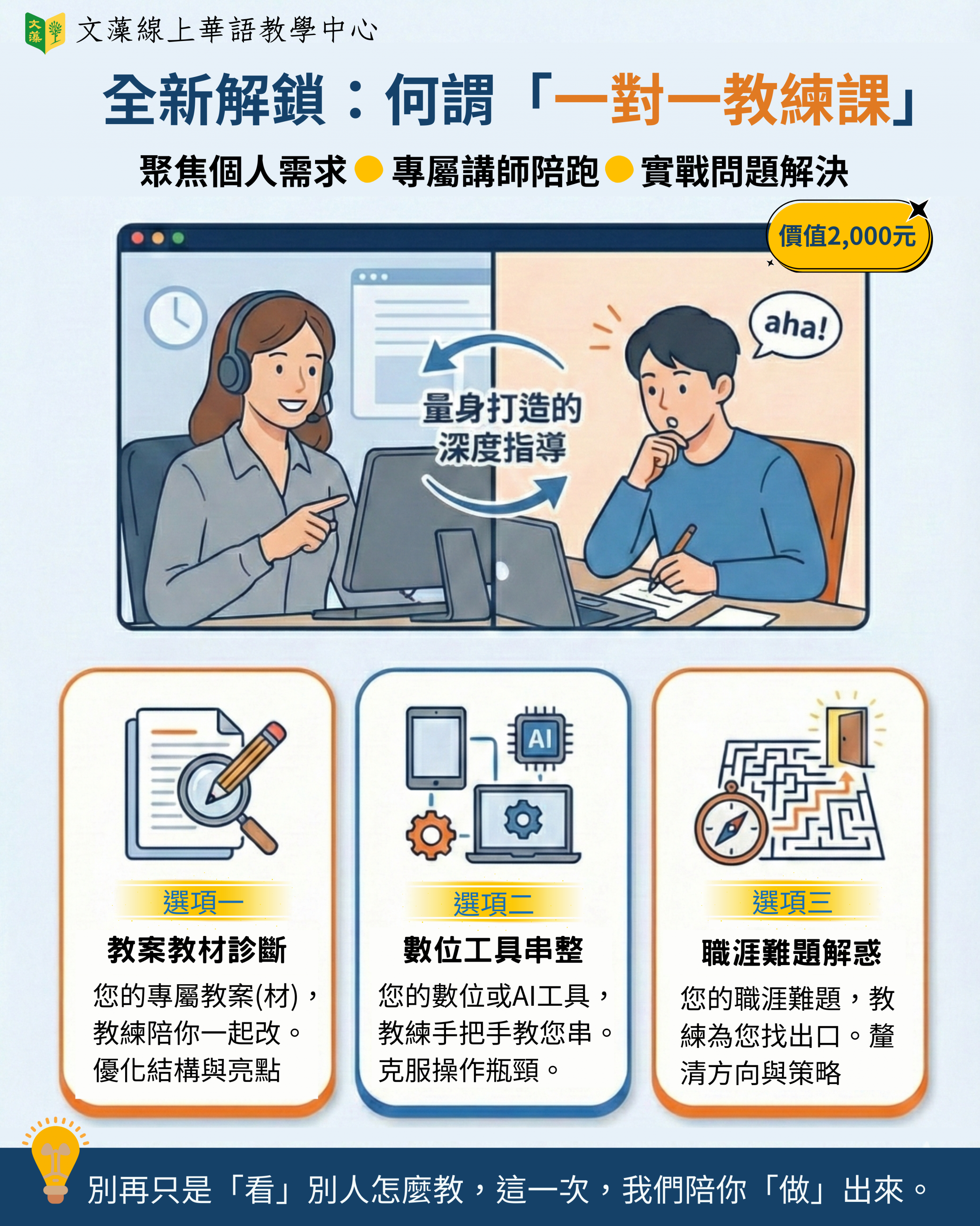 我們知道,轉換跑道很不容易。第一次試教會緊張,第一次設計課程會卡關。所以我們陪著你。